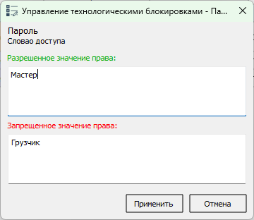 Для строкового права вы можете задать разрешенное и запрещенное значения права. Для этого дважды кликните по значению строкового права. В открывшемся окне введите разрешенное и запрещенное значения.