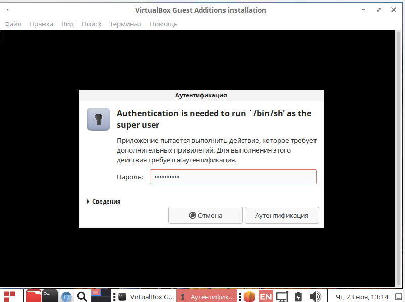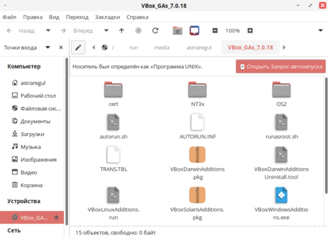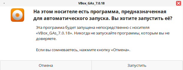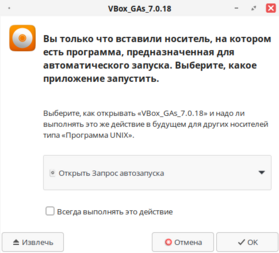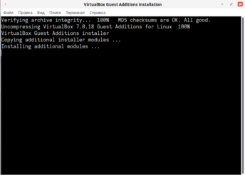Чтобы после установки и обновления ОС заработали буферы обмена и передача данных на виртуальную машину, необходимо установить "Гостевые дополнения".