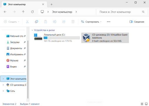 2. Откройте "Проводник" и выберите "Этот компьютер". В разделе "Устройства и диски" появится CD-дисковод с диском гостевых дополнений.
