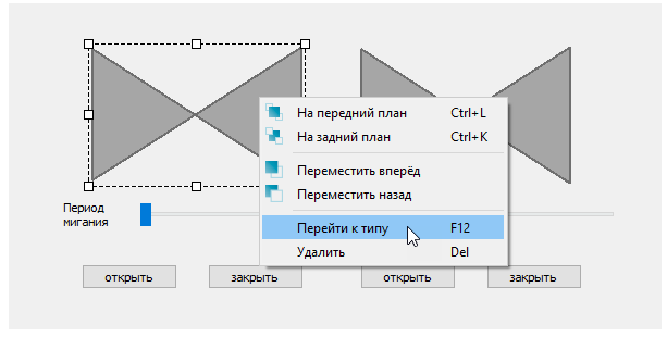Чтобы перейти к редактированию типа конкретного экземпляра объекта данного типа выделите экземпляр и в контекстном меню выберите Перейти к типу (клавиша F12). В результате тип графического объекта будет открыт для редактирования и выделен в Библиотеке компонентов.