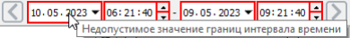 Если указать в качестве начала интервала значение, большее или равное значению окончания интервала, возникнет ошибка. Текст ошибки записывается в компонент в качестве значения описываемого свойства.