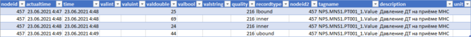 Результат запроса на получение текущего значения сигнала "NPS.BIK172_6.BB97n.Cmd" (текущее (измененное) значение сигнала отображается в столбце "valuint"):