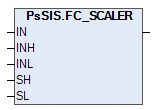 Функция FC_SCALER преобразует диапазон входных значений в нормированный диапазон выходных значений.