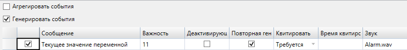 3. Выберите параметр типа STRING, и в окне "События" установите флаг "Генерировать события".
