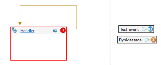 4. Создайте обработчик событий, в котором будет прописано условие изменения сообщения. Для того, чтобы обработчик отрабатывал по изменению параметру Test_event, от параметра проведите стрелку к верху обработчика события.
