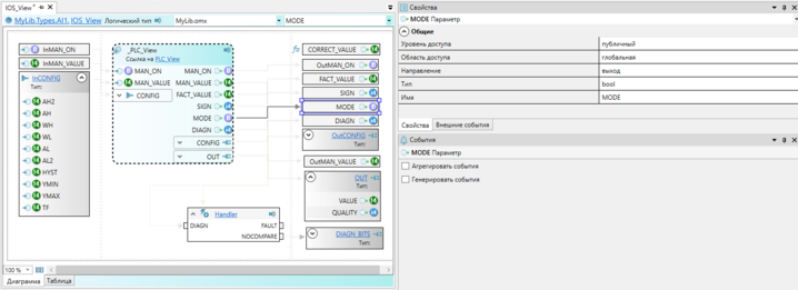 5. Рассмотрим задание генерации события для режима работы датчика. Выделите параметр "MODE" типа bool и перейдите во вкладку "События".