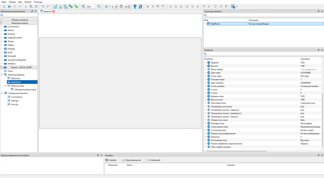 Главная экранная форма открывается при запуске проекта в Runtime.