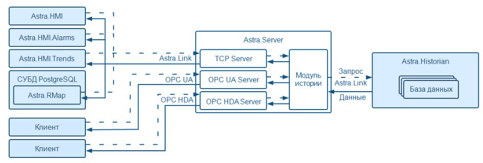 Astra.Historian – программный компонент для хранения истории изменений значений сигналов и уведомлений о происходивших событиях.