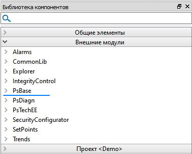 Чтобы воспользоваться элементами библиотеки PsBase при разработке визуальной части проекта, выполните следующие действия: