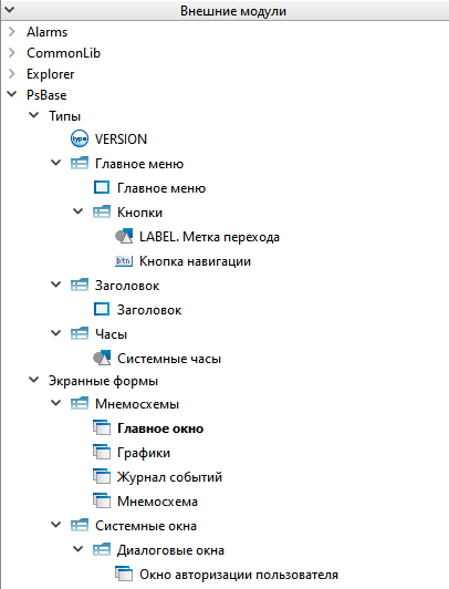 3. Раскройте вкладку "PsBase" и выберите необходимый тип или экранную форму.