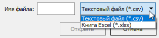 Текстовый файл (*.csv)|*.csv|Книга Excel (*.xlsx)|*.xlsx