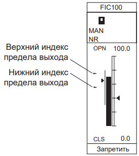 Данная функция отображает индексы, указывающие на допустимый диапазон величин, изменяемых вручную при нормальной работе. Индекс управляющего выхода имеется только в блоках регуляторного управления.