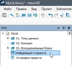 1. Откройте редактор "Информация о проекте" двойным кликом мыши в дереве объектов.
