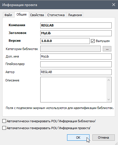 Перед выпуском библиотеки необходимо задать информацию о проекте.