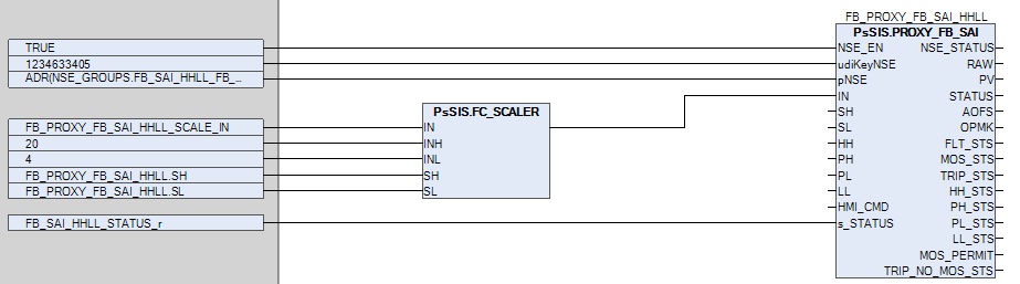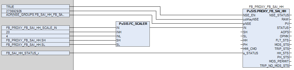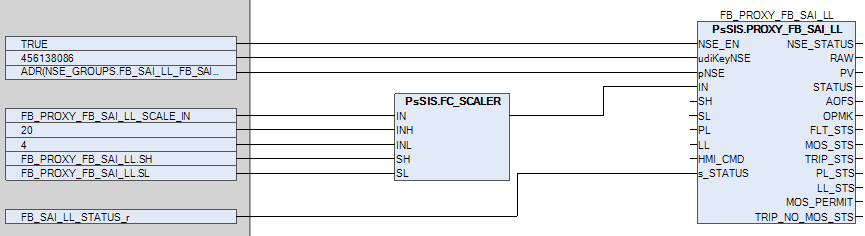 Для преобразования входного сигнала из электрических единиц в инженерные единицы используется функция FC_SCALER.