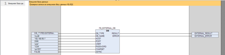 На скриншоте выше приведен пример подключения к внешней БД.