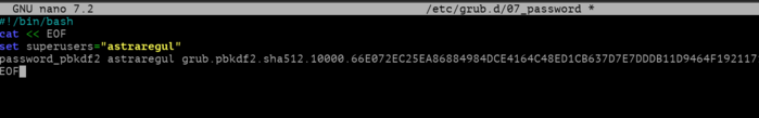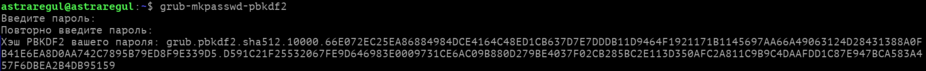 2. Введите новый пароль для загрузчика GRUB. В результате получим хэш нового пароля.