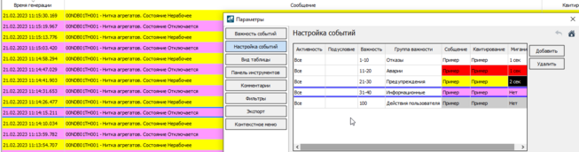 4. В данной вкладке измените/добавьте необходимую цветовую схему для важностей событий. Нажмите двойным кликом на строчку из таблицы для изменения уже созданных групп событий или добавьте собственные группы, нажав кнопку "Добавить".