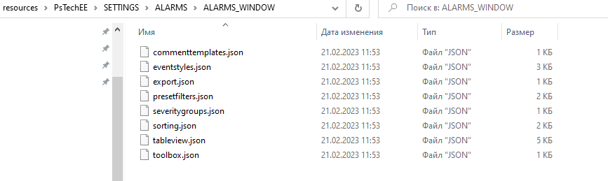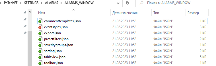 7. В папке "ALARM_WINDOW" находятся файлы формата json, выделите все файлы и скопируйте их.