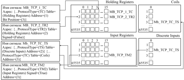 Указание, к какому сегменту памяти протокола Modbus привязан сигнал. Принимает одно из следующих значений: