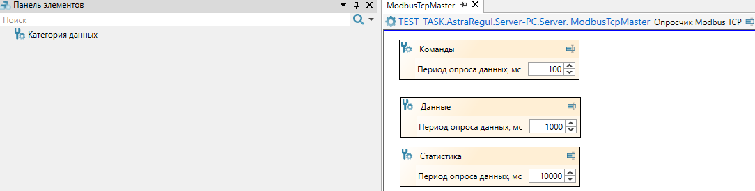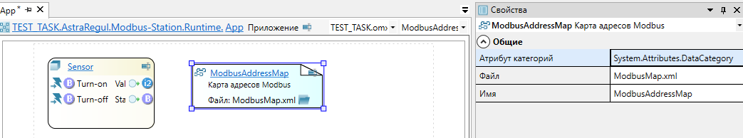 2. У элемента "Карта адресов Modbus" в свойстве "Атрибут категорий" укажите атрибут.