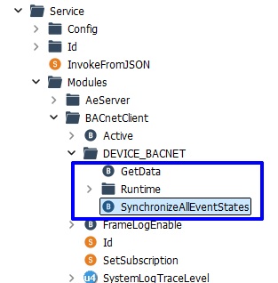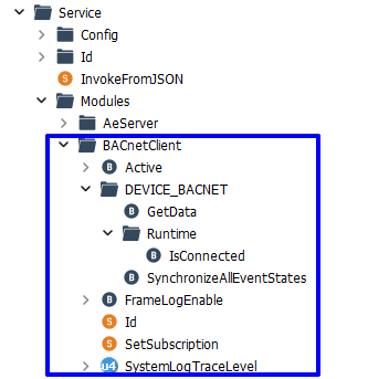Модуль Клиент BACnet динамически создаёт служебные сигналы.