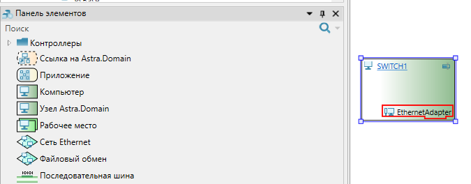 Перейдите в компонент "Astra.Domain" и перетащите в рабочую область из "Панели элементов" компонент "Компьютер".
