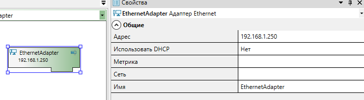 2. Перейдите в элемент "Компьютер" и задайте адрес коммутатора в свойствах компонента "EthernetAdapter".
