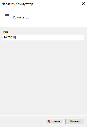 2. Задайте объекту "Коммутатор" имя "SWITCH1" и нажмите "Добавить".