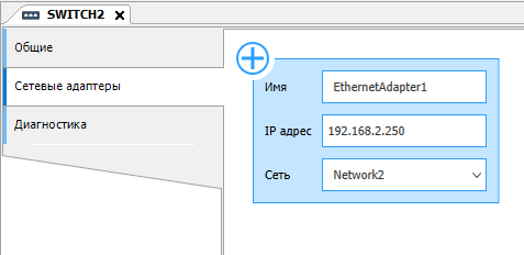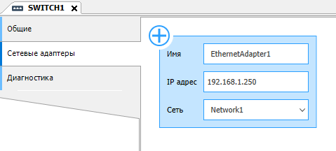 8. Перейдите во вкладку "Сетевые адаптеры" и задайте IP адрес для основного коммутатора. Обратите внимание на название сети.