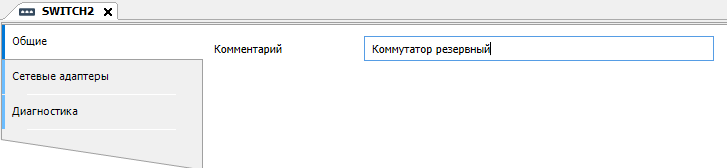 3. Во вкладке "Общие" задайте комментарий "Коммутатор основной".