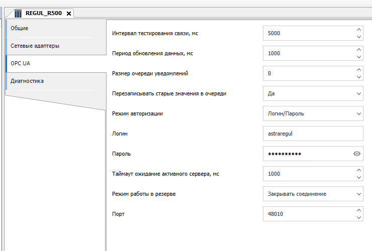 3. Перейдите во вкладку "OPC UA" и задайте следующие настройки для OPC UA сервера: