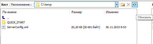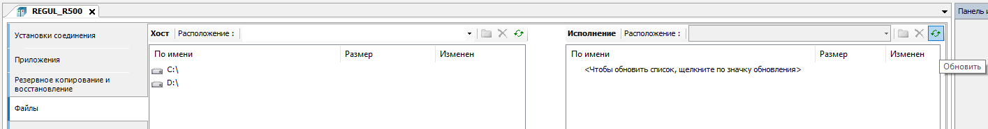 10. Перейдите во вкладку "Файлы" и обновите информацию о файловом расположении ПЛК нажав кнопку "Обновить".