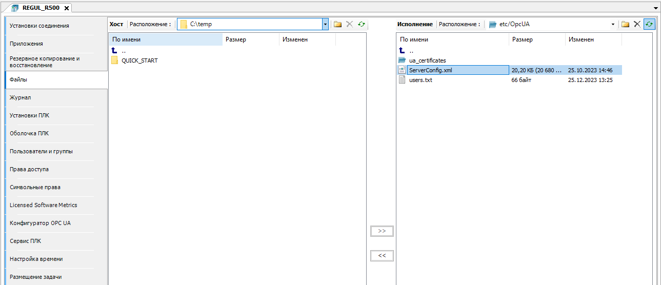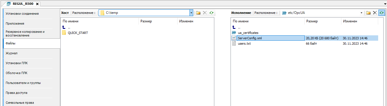 11. Перейдите по пути "etc/OpcUa" и выделите файл "ServerConfig.xml".