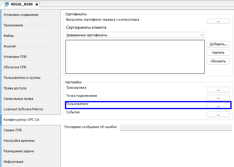 4.4.1.2.1.4. Конфигурирование сервера OPC UA