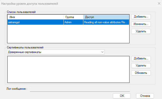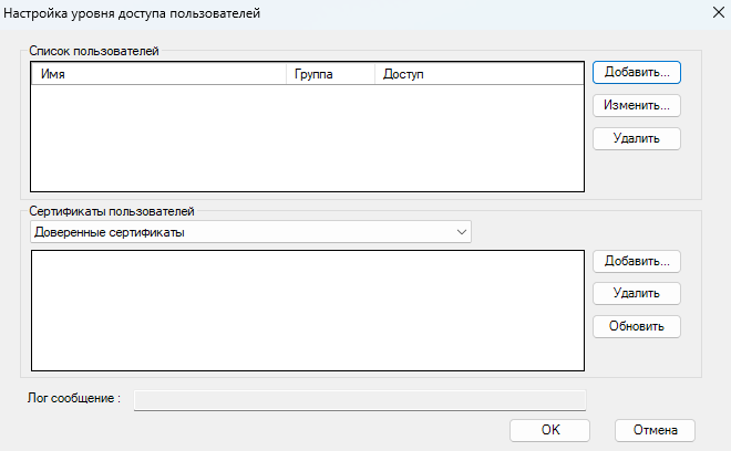 5. Откроется окно "Настойка уровня доступа пользователей". Нажмите кнопку "Добавить...".