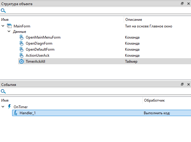 7. В структуре объектов будет добавлен таймер. Задайте ему новое имя, например, TimerAckAll.