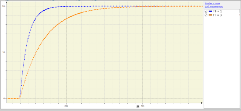 Графики временных характеристик фильтра при TF = 1 и TF = 3: