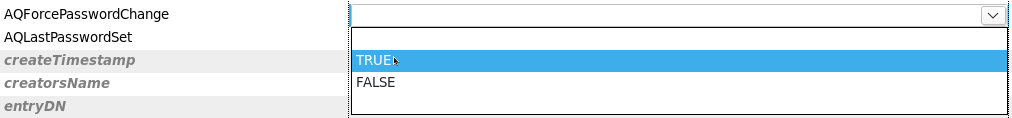 13. Чтобы после авторизации под пользователем сменить его пароль, измените параметр "AQForcePasswordChange" со значения "FALSE" на "TRUE":