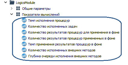 Для просмотра параметров статистики модуля подключитесь к Astra.Server приложением статистики и выберите в дереве модуль LogicsModule.
