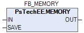 Если на входе SAVE установлено в TRUE, алгоритм сохраняет значение входа IN на выходе OUT, иначе оставляет значение на выходе OUT без изменений.