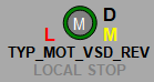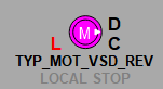 Символ D мнемосимвола окрашивается в соответствии с цветовой схемой и приоритетами тревог параметров оборудования.