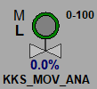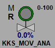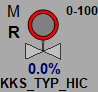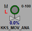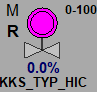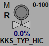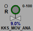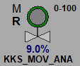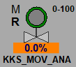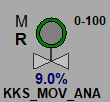 Выход блока арматуры. В случае, если датчик положения не подключен на вход алгоритма POS в поле будет отображаться значение переменной MV. При подключенном датчике в поле будет отображаться значение датчика положения, поле станет активным и будет являться индикатором состояния датчика положения: