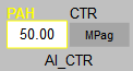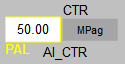 Отображает единицы измерения технологического параметра PV. При нажатии открывается Окно Рабочее функционального блока.