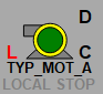 Символ D мнемосимвола окрашивается в соответствии с цветовой схемой и приоритетами тревог параметров оборудования.