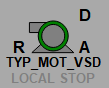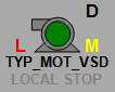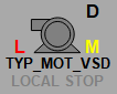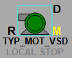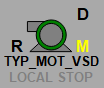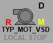 Символ D мнемосимвола окрашивается в соответствии с цветовой схемой и приоритетами тревог параметров оборудования.