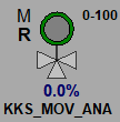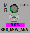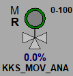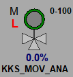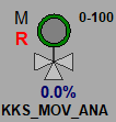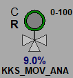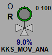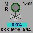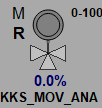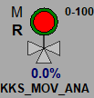 Выход блока арматуры. В случае, если датчик положения не подключен на вход алгоритма POS в поле будет отображаться значение переменной MV. При подключенном датчике, в поле будет отображаться значение датчика положения, поле станет активным и будет являться индикатором состояния датчика положения: