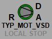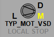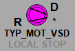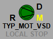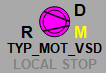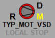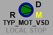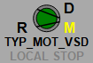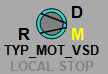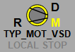 Символ D мнемосимвола окрашивается в соответствии с цветовой схемой и приоритетами тревог параметров оборудования.