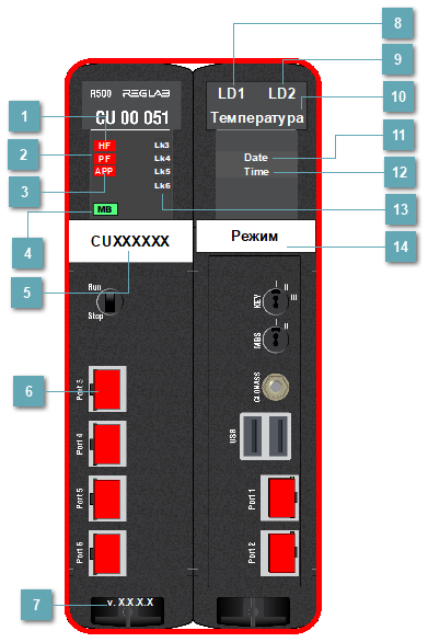Когда обнаруживается аппаратная ошибка модуля, по контуру появляется красная линия.