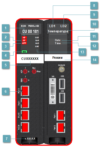 Когда обнаруживается аппаратная ошибка модуля, по контуру появляется красная линия.